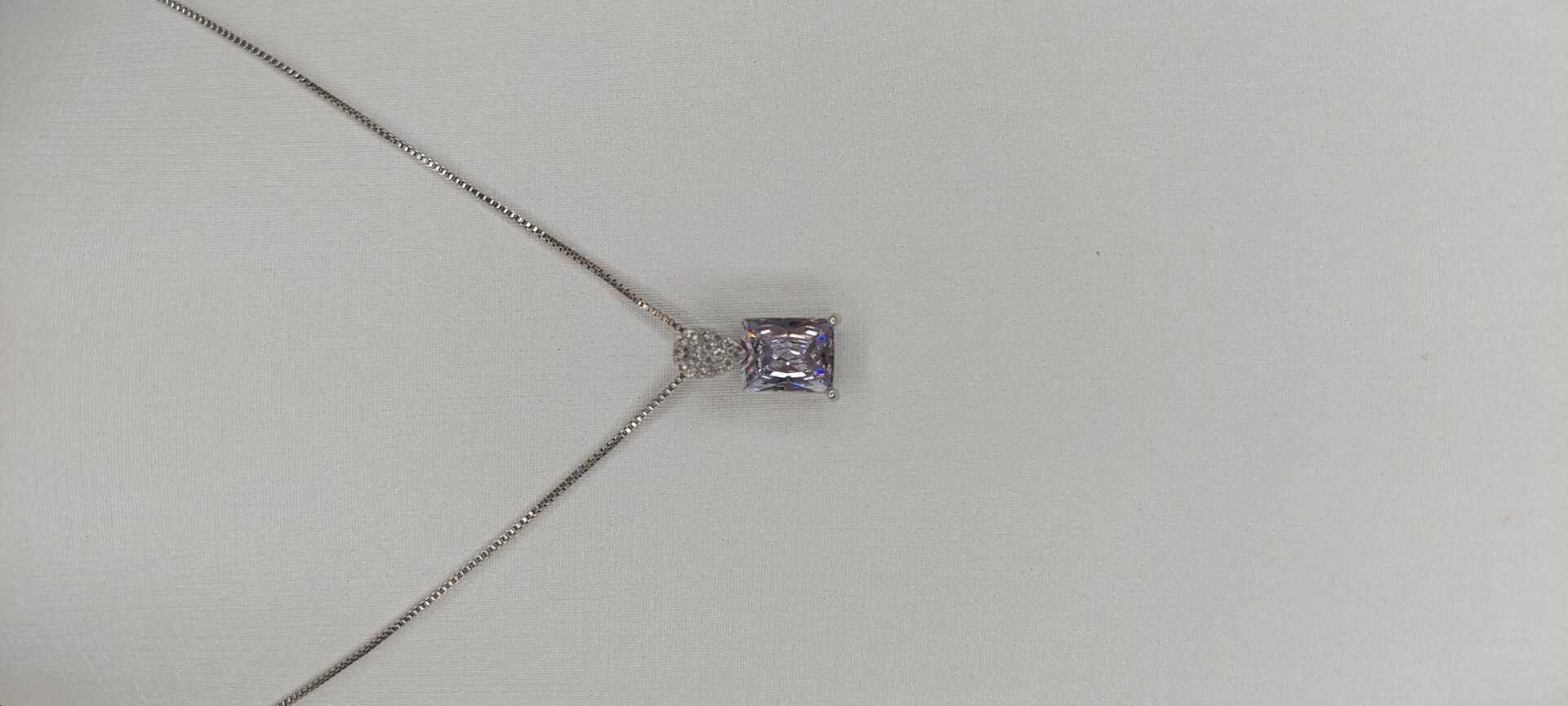 - Colar prateado medio ping gota crav & pedra ret cristal