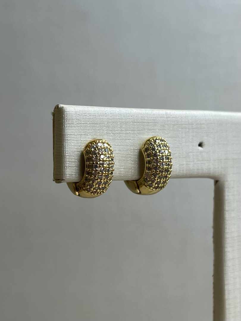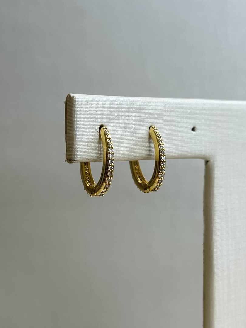 - argola fina forma oval cravejada frente e verso